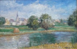 D’Albert Dubois-Pillet, c’est le paysagiste qui était représenté avec le Pré en contrebas (n°27 du catalogue raisonné en ligne sur ce site ; reproduit ci-dessous) sur le stand de la galerie Stephen Ongpin Fine Art, tandis que la galerie Alon Zakaim exposait le Paysage à l’écluse (répertorié sous le n°36). Enfin, la galerie Stair Sainty Gallery avait choisi de montrer les beaux Chalands sur la Seine (n°17 de mon catalogue, reproduit en couverture de celui-ci).